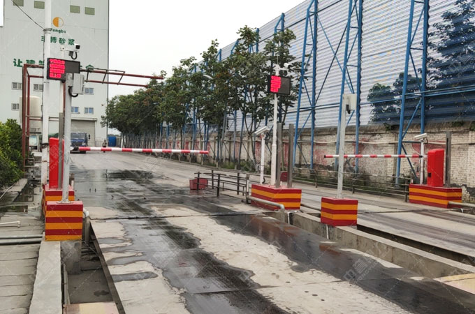 河南省衛(wèi)輝市豐博砂漿進(jìn)料無人值守地磅:LED屏顯示稱重?cái)?shù)據(jù),攝像頭監(jiān)控(抓拍)防作弊取證,道閘規(guī)范車輛停放位置等。