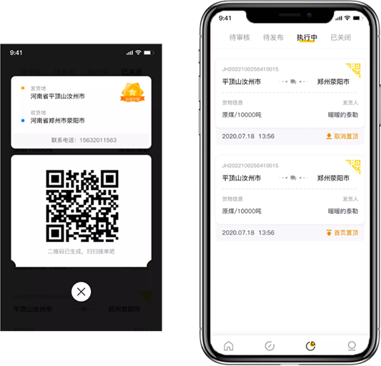 點擊執(zhí)行中計劃右上角的二維碼標識,生成計劃二維碼名片,司機掃描二維碼接單,生成運單。