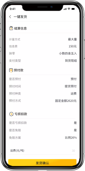 路線規(guī)劃:收發(fā)貨地址后,其規(guī)劃結果自動帶出。選擇貨物信息(PC端維護貨物信息)及車型信息/時間信息。