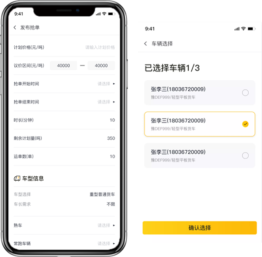 選中待發(fā)布/執(zhí)行中的計劃,發(fā)布搶單,填寫議價區(qū)間、搶單開始及結束時間、運單數(shù)及車輛信息等,確認發(fā)布,生成運單,在貨主的運單待接受列表。