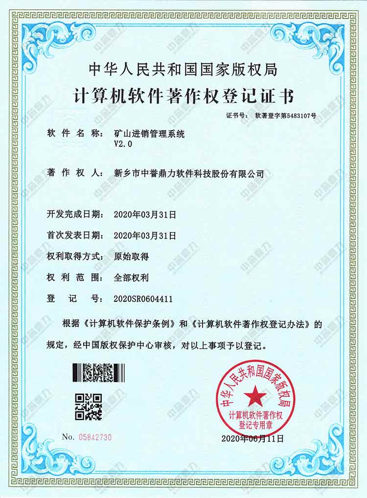 軟件名稱:礦山進(jìn)銷管理系統(tǒng)V2.0